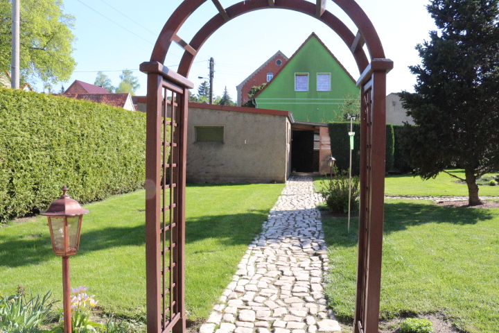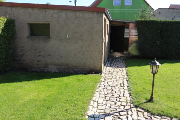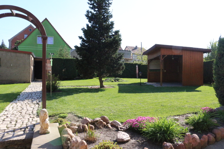 Großer Garten mit Freisitz, Grillplatz, Regenwasserbehälter und Garage mit elektrischer Toröffnung.