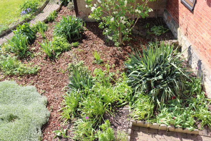 Garage, Garten, Dachterrasse, Terrasse im Garten, Brunnen zur Gartenbewässerung